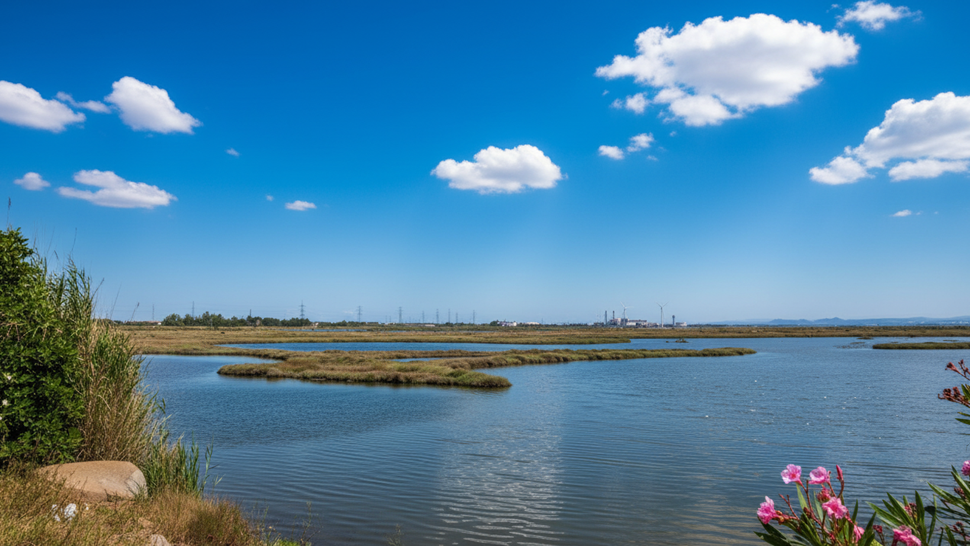 Area protetta che ospita numerose specie di uccelli, tra cui i fenicotteri rosa.